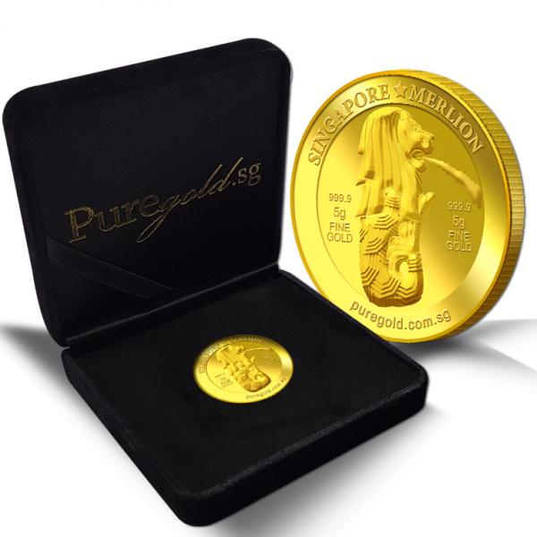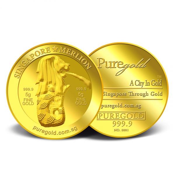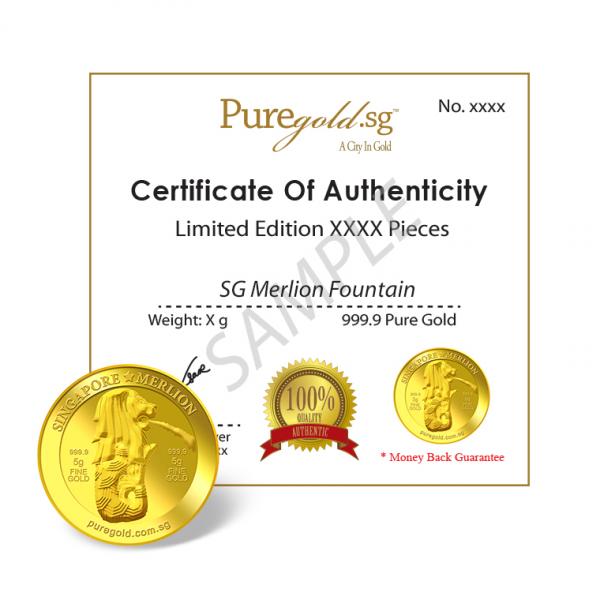 The image of Singapore’s national mascot, the Merlion, is embossed on a 5g 999.9 fine gold Medallion.