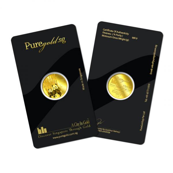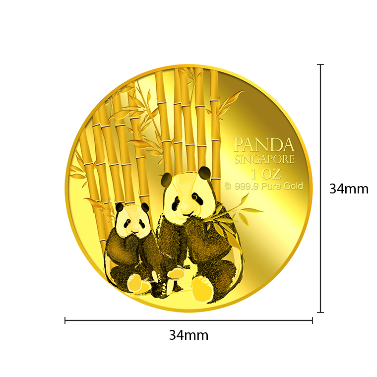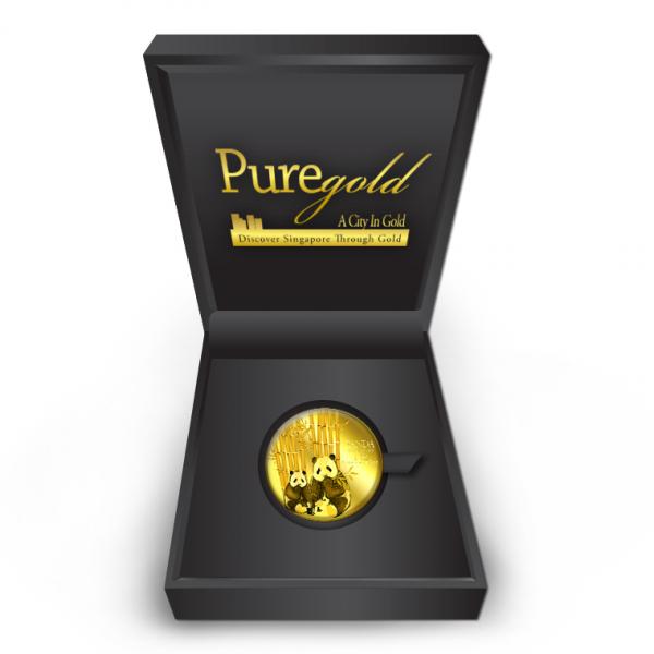 The image of the two giant pandas is embossed on a 1oz 999.9 fine gold.
