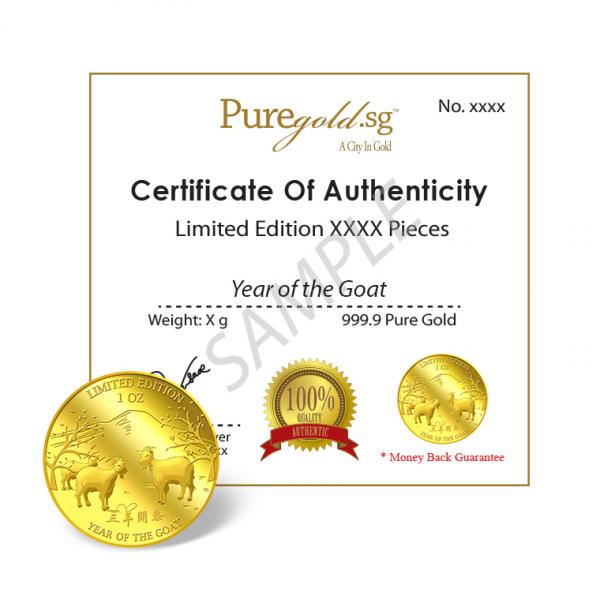 PureGold.sg will release no more than 2000 pieces of the 1oz Year of the Goat gold Medallion.