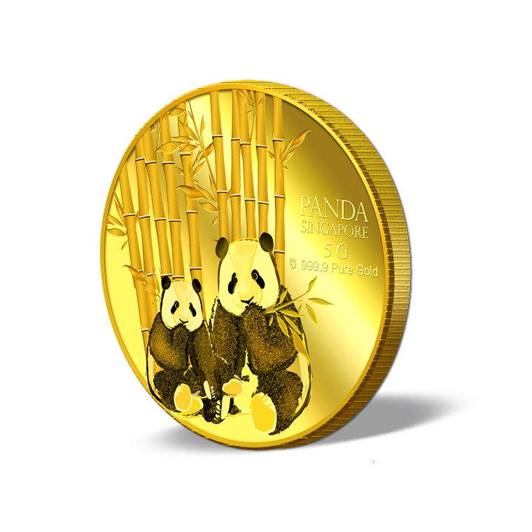 The image of the two giant pandas is embossed on a 5g 999.9 fine gold.