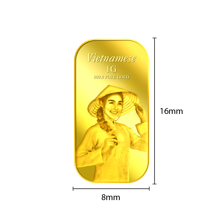 The image of the Vietnamese is embossed on a 1g 999.9 fine gold bar.