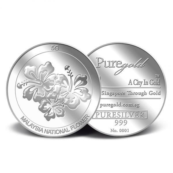 The image of the Hibiscus is embossed on a 5g 999 fine silver medallion.