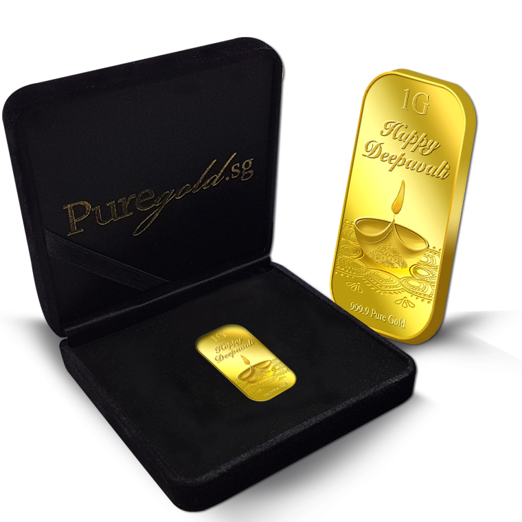The image of Lamp is embossed on a 1g 999.9 fine gold Bar.