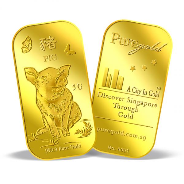The image is embossed on a 5g 999.9 fine gold bar.