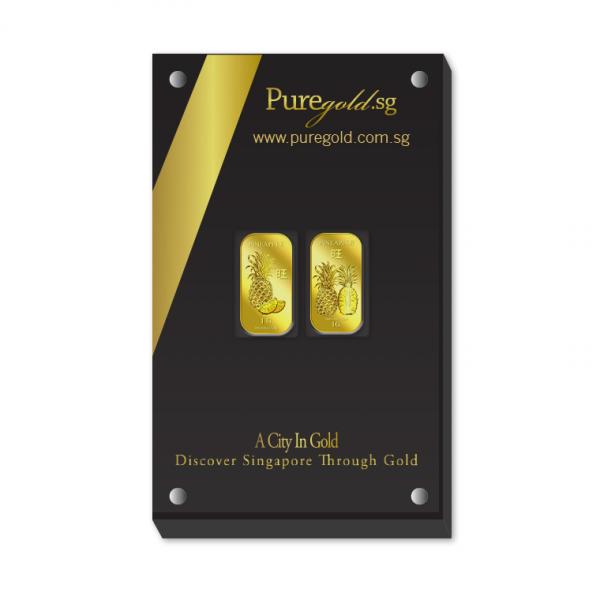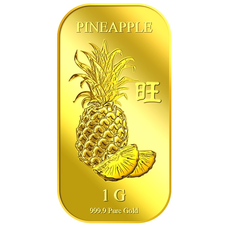 The image is embossed on a 1 gram 999.9 fine gold bar.