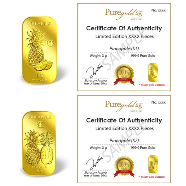 Each gold bar is accompanied by a GS Assay Certification of Authenticity.