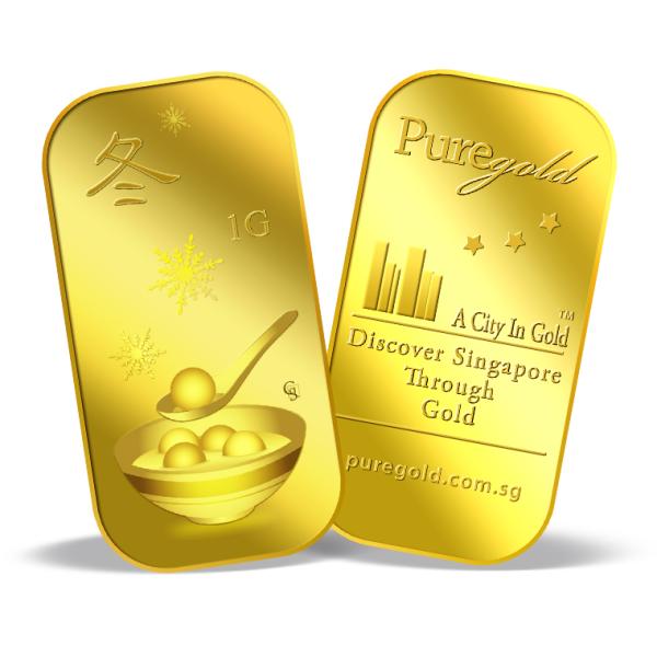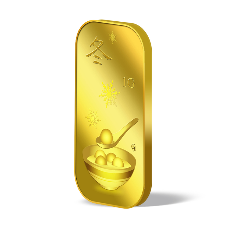The image is embossed on a 1 gram 999.9 fine gold bar.