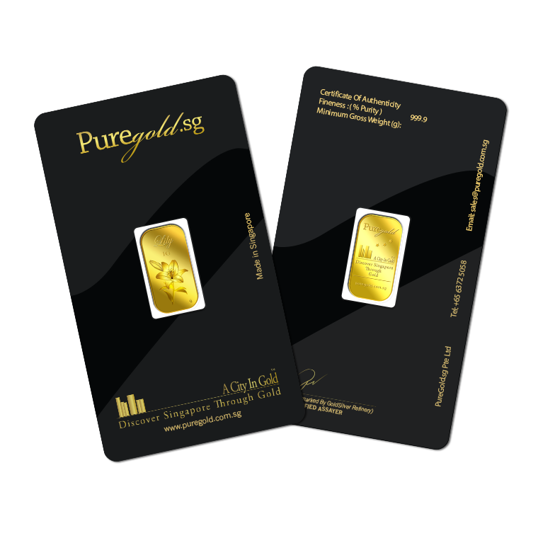 The image is embossed on a 1 gram 999.9 fine gold bar.