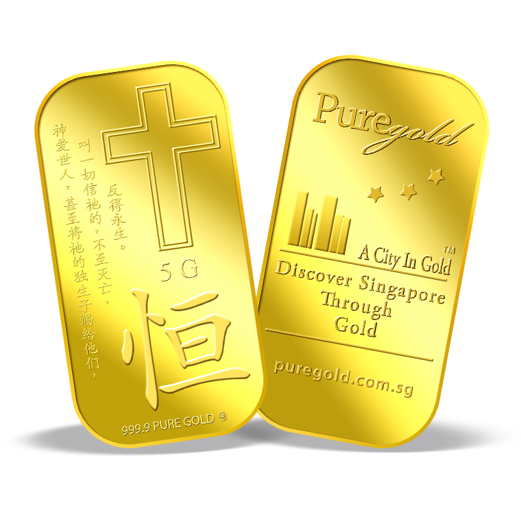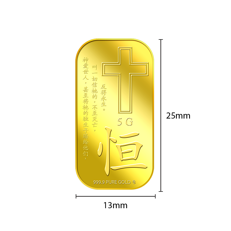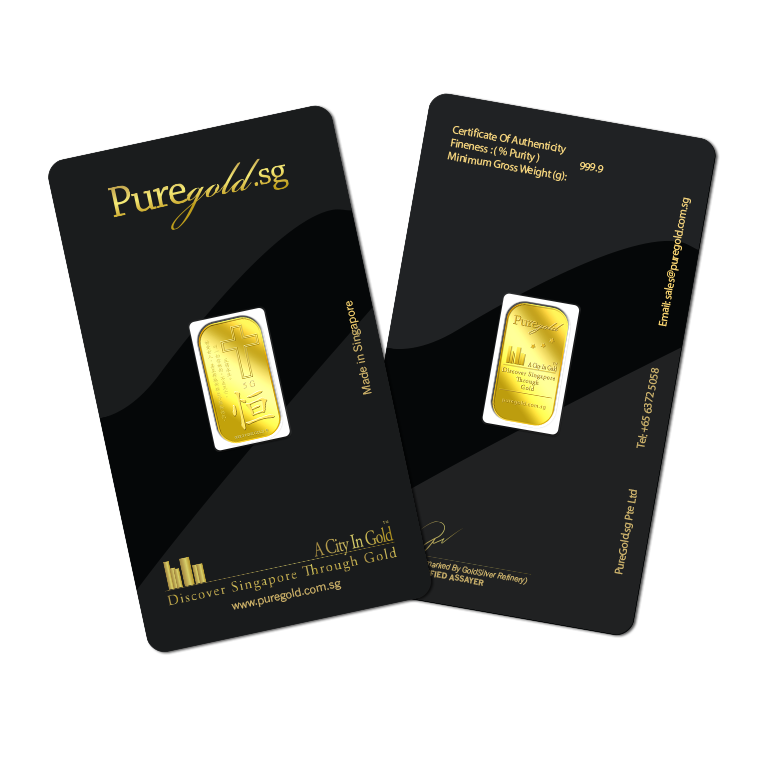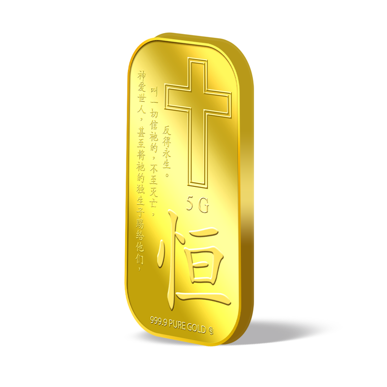 The image is embossed on a 5 grams 999.9 fine gold bar.