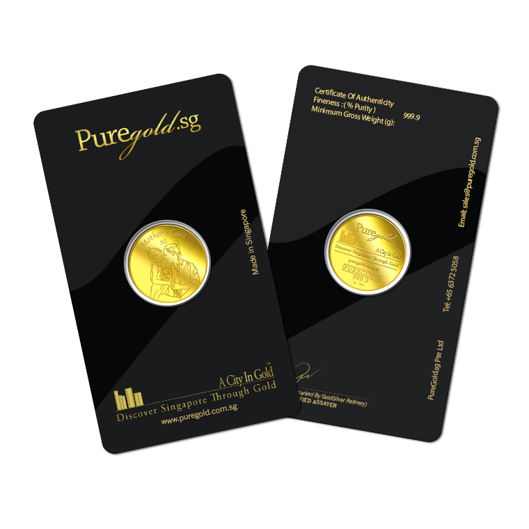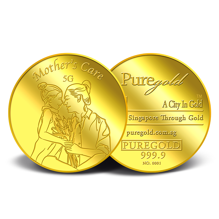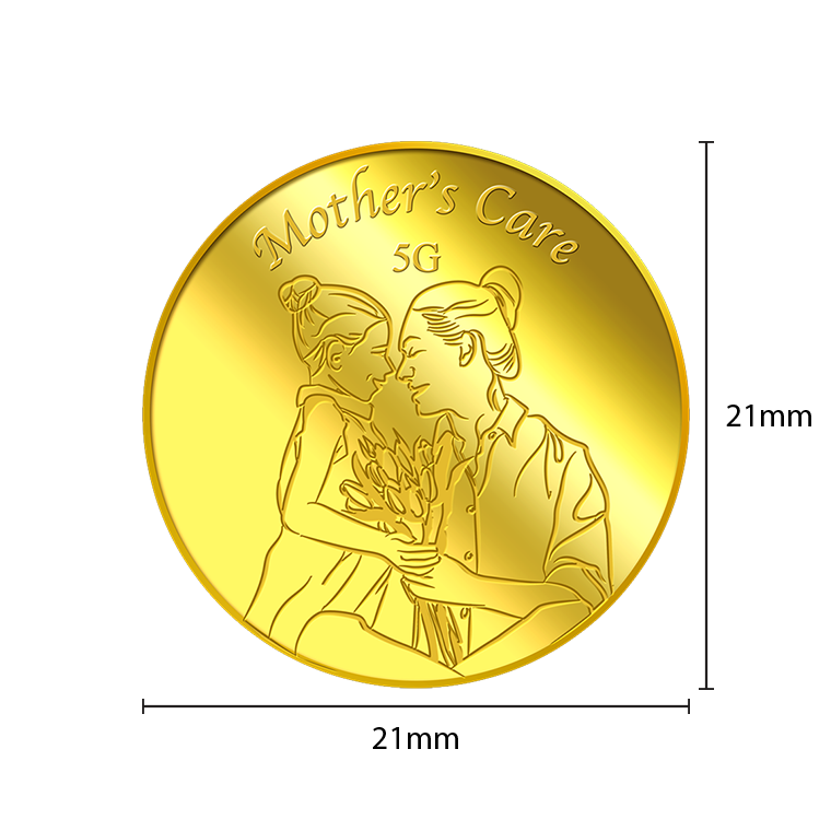 The image is embossed on a 5 grams 999.9 fine gold medallion.