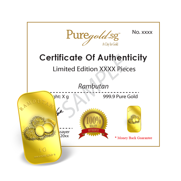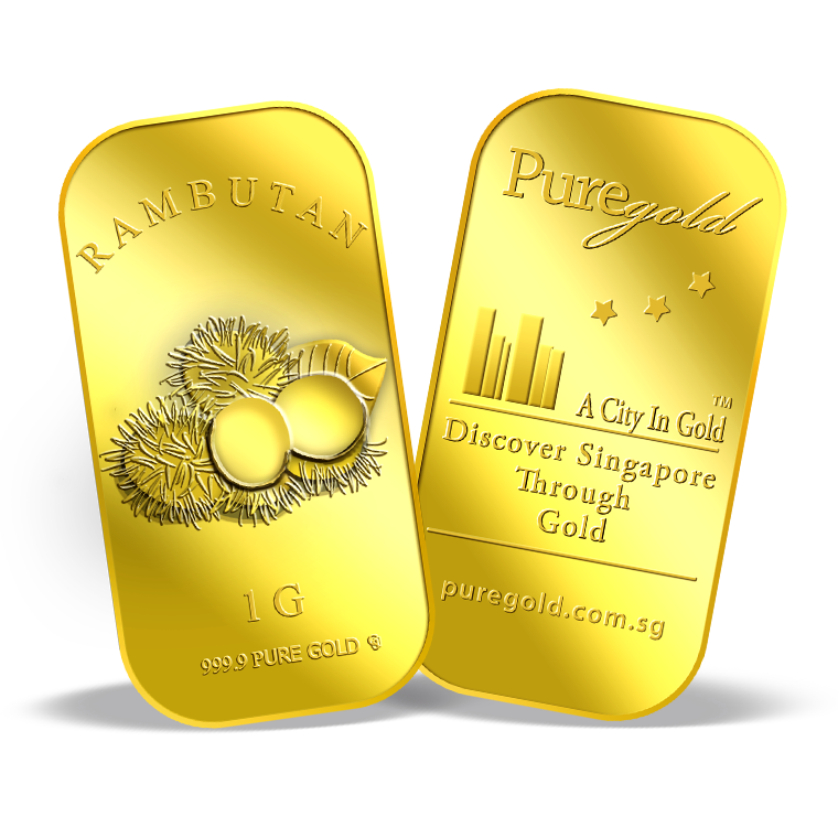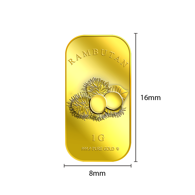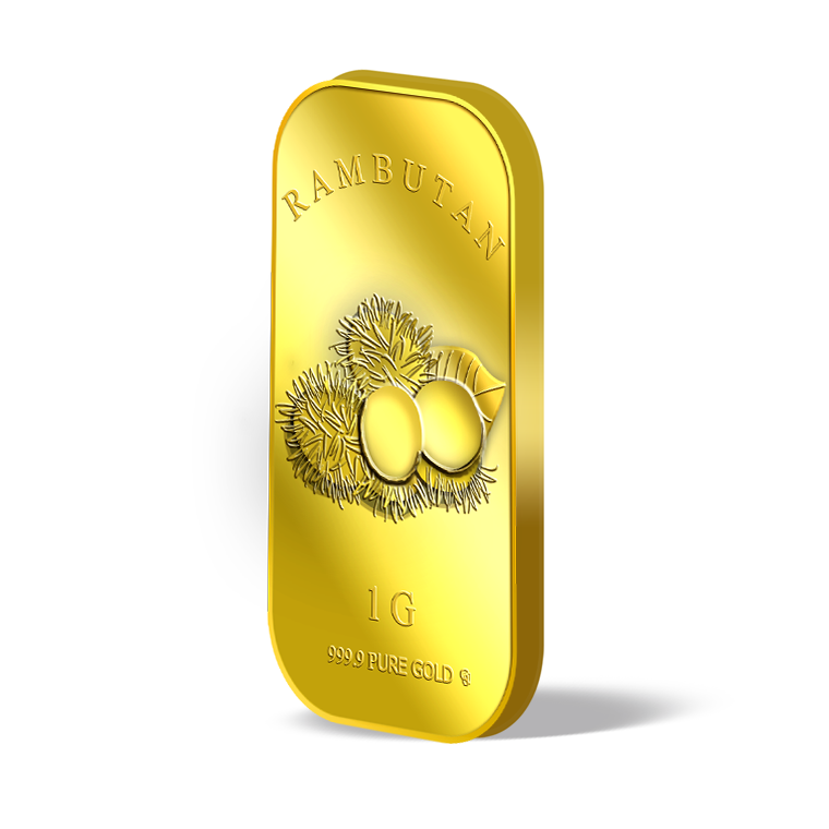 The image is embossed on a 1 gram 999.9 fine gold bar.