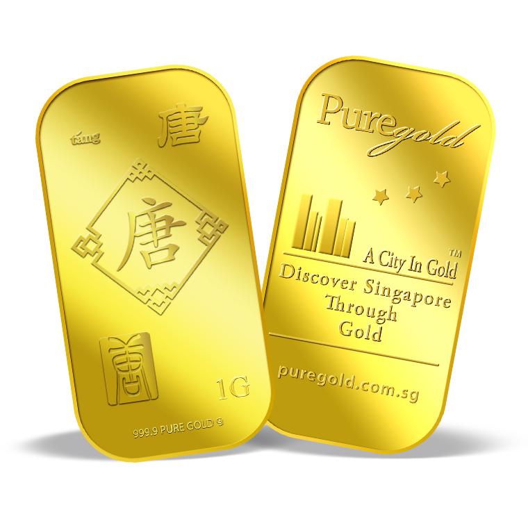 The image is embossed on a 1 gram 999.9 fine gold bar.