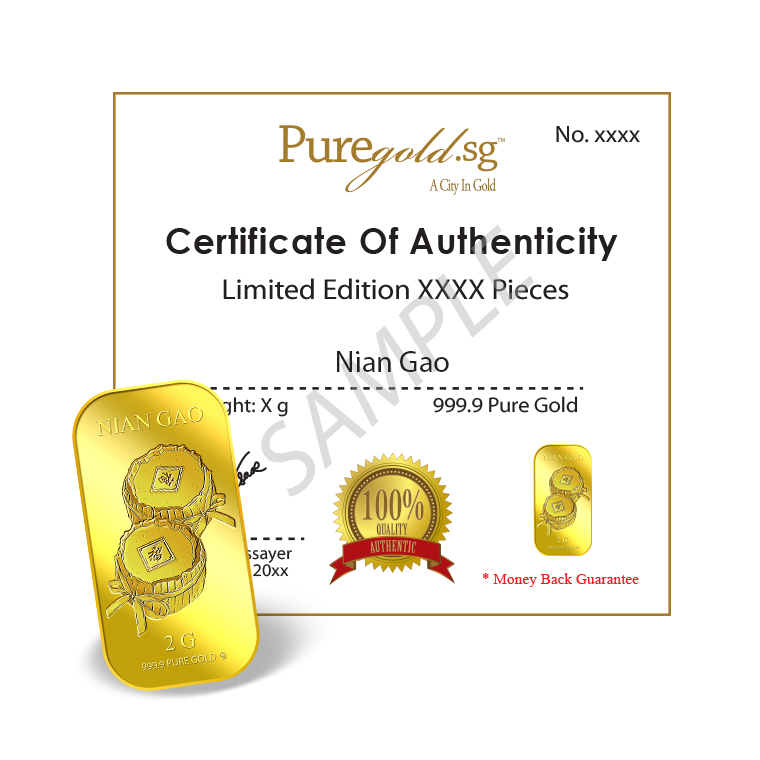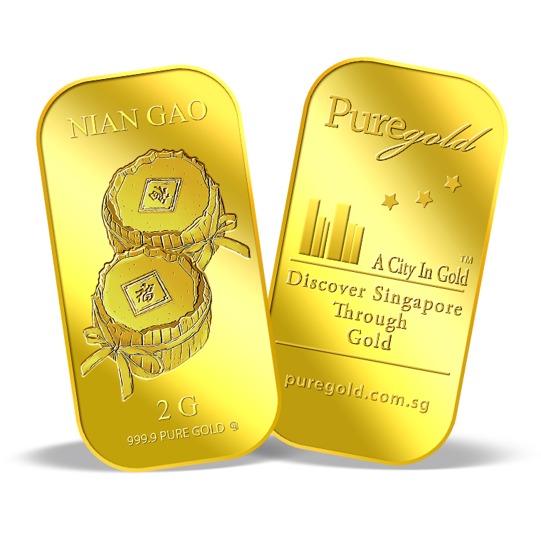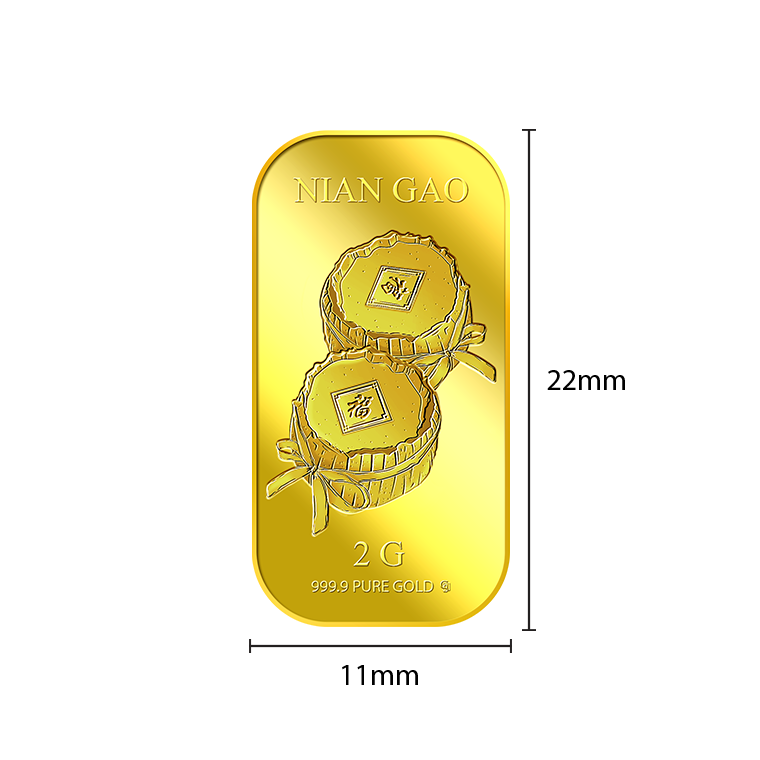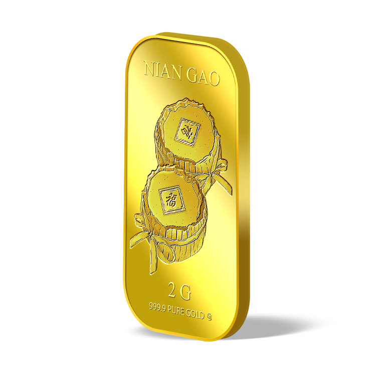 The image is embossed on a 2 grams 999.9 fine gold bar.