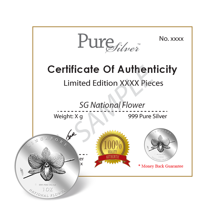 A hybrid orchid between the Burmese Vanda teres and the Malayan Vanda Hookeriana, the Vanda (Miss Joaquim) was bred by horticulturist Agnes Joaquim and chosen as Singapore national flower in 1981. Vanda Miss Joaquim was also selected as the national flower due to its hardy and resilient qualities, and its unique trait of blooming throughout the year. These are characteristics which reflect Singapore’s continuous pursue for progress and excellence in all aspects of life, and symbolize Singapore’s never ending hope and renewal of the future. This robust free-flowering plant has long been a symbol of love and beauty, making it an elegant addition to any silver collection.