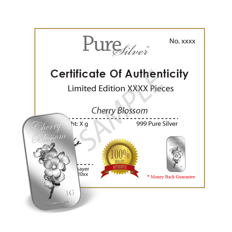 1g Cherry Blossom Silver Bar
