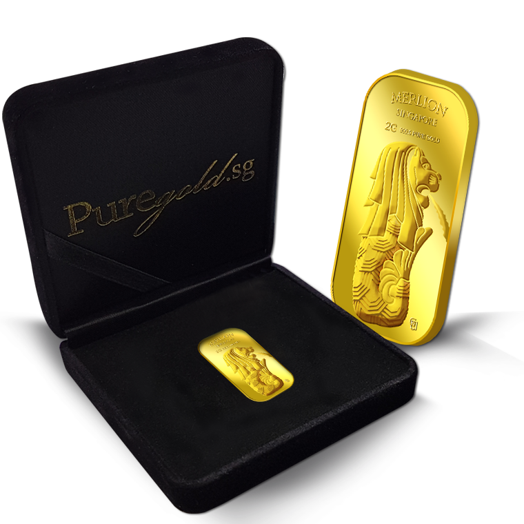 The new version of the Singapore Merlion gold bar design portrays Singapore’s national mascot, the Merlion, as a fountain with water gushing out from its mouth. The design also includes the inscription SINGAPORE «MERLION, the Medallion’s weight and fineness, and PureGold webpage address.