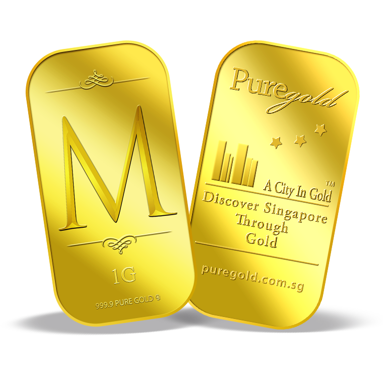 The image is embossed on a 1 gram 999.9 fine gold bar.