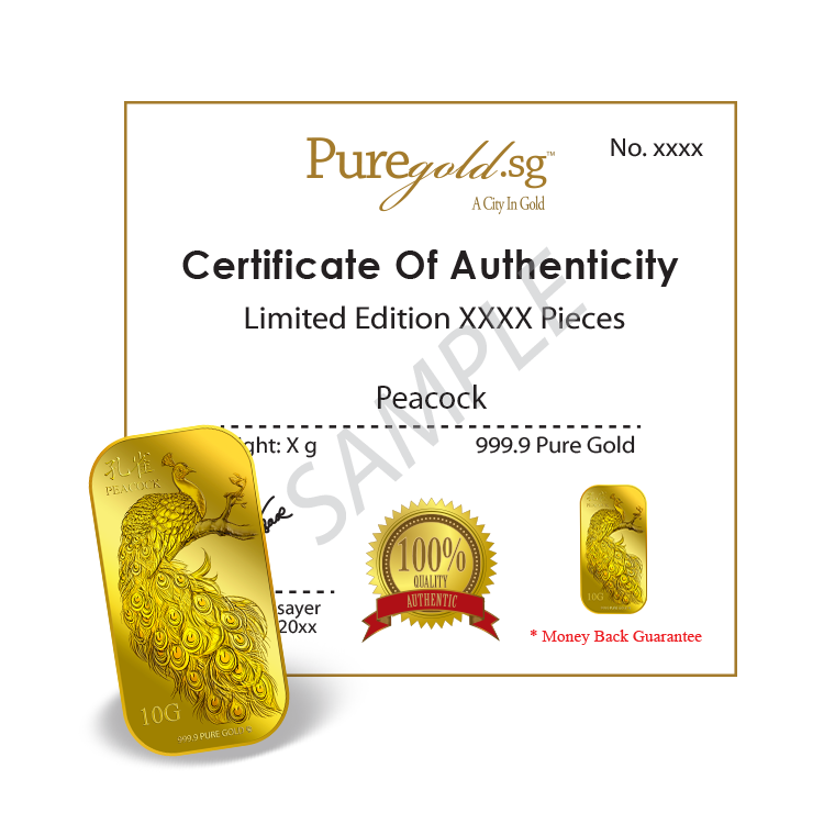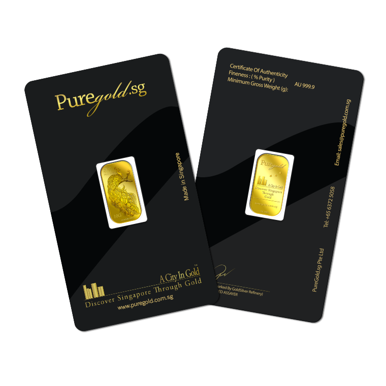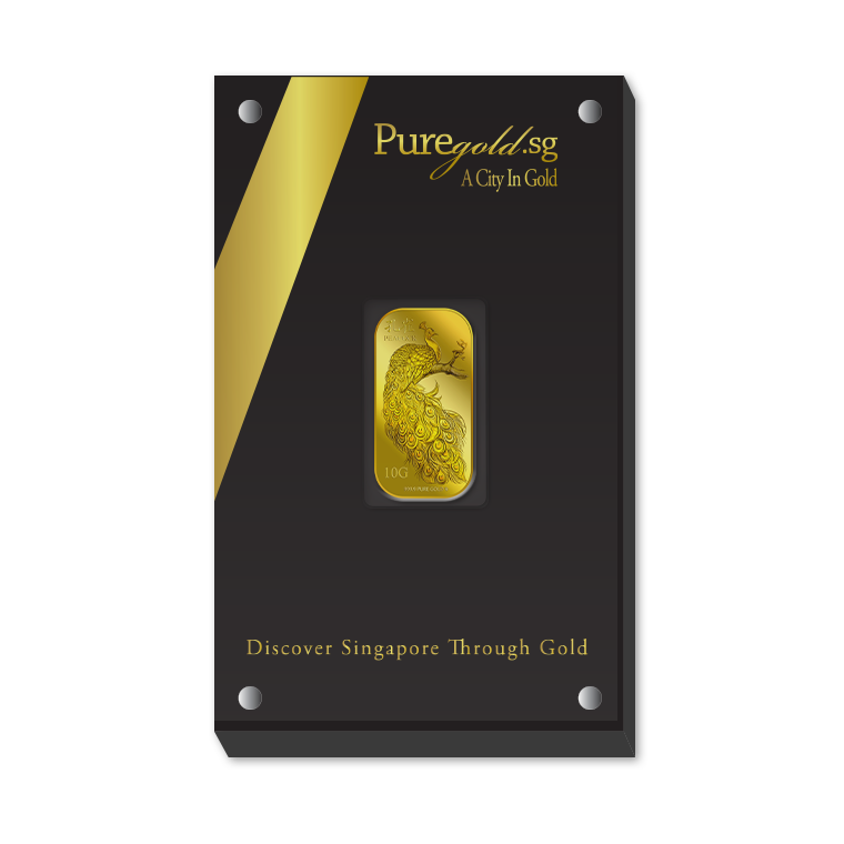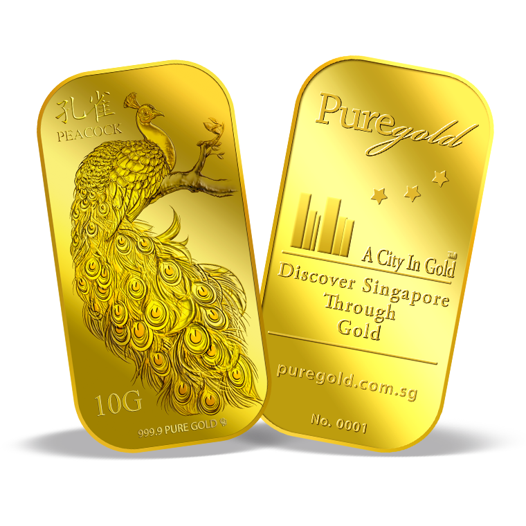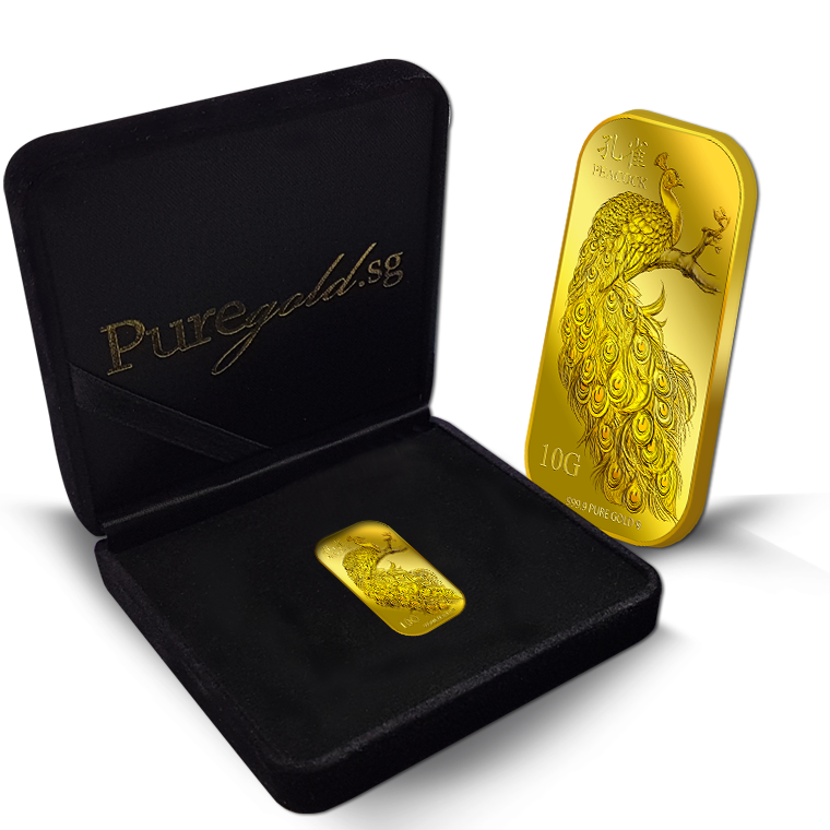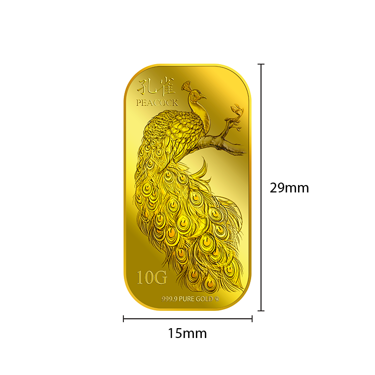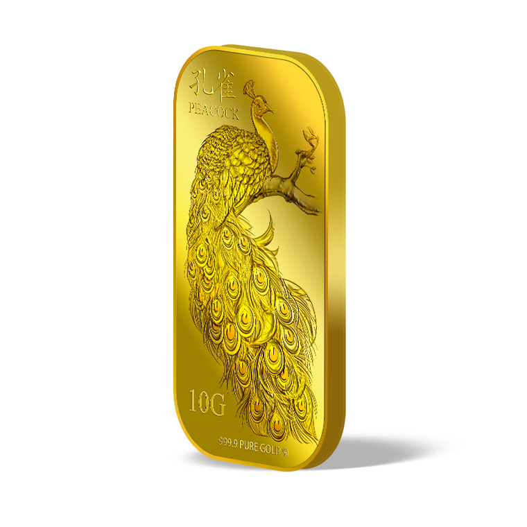 The image is embossed on a 10 grams 999.9 fine gold bar.
