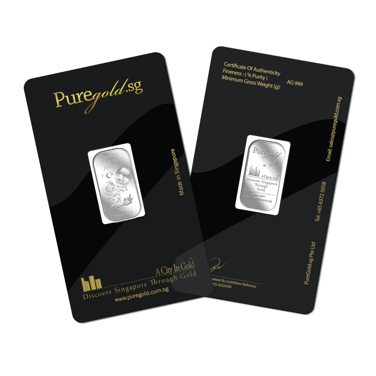 The image is embossed on a 1 gram 999 fine silver bar.