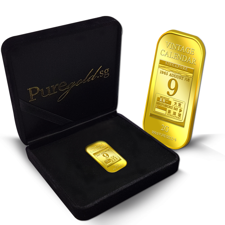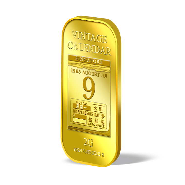 The image is embossed on a 2 grams 999.9 fine gold bar.