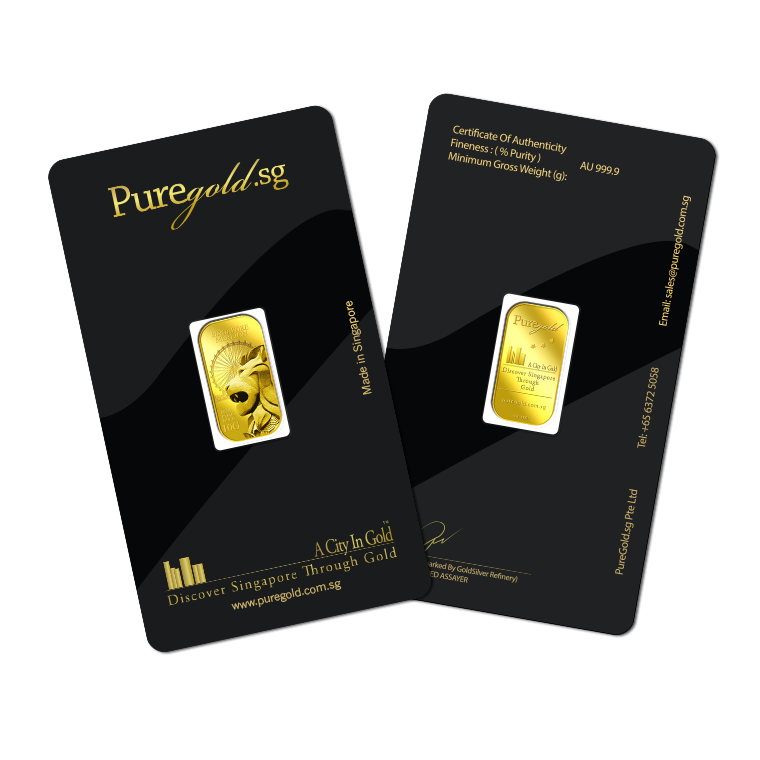The image is embossed on a 10 grams 999.9 fine gold bar.