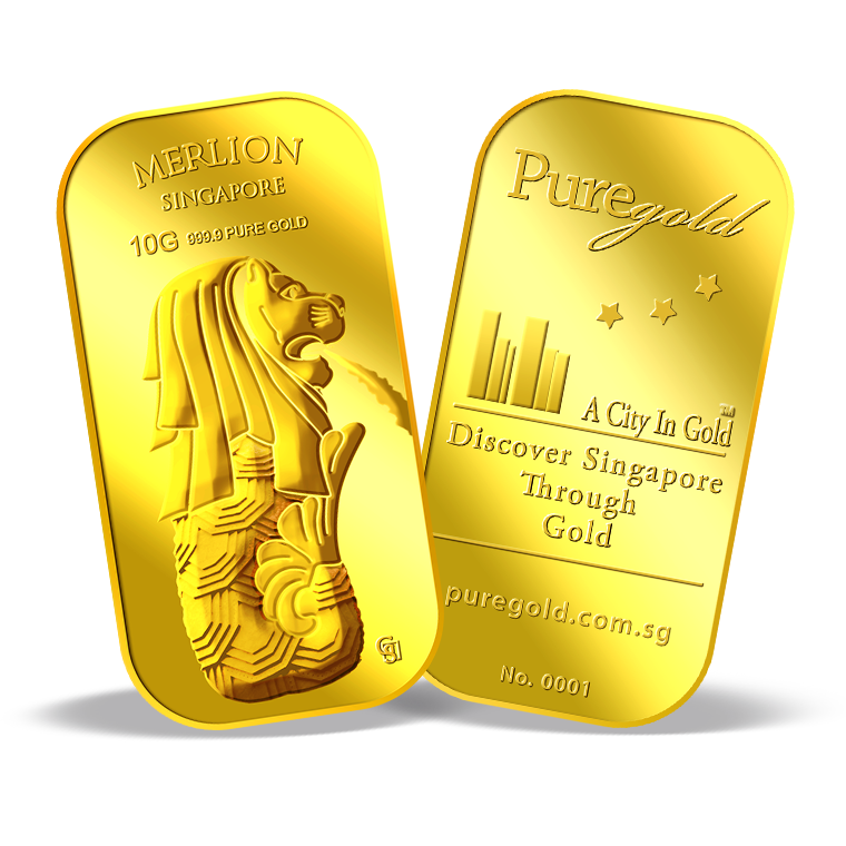 The image is embossed on a 10 grams 999.9 fine gold bar.