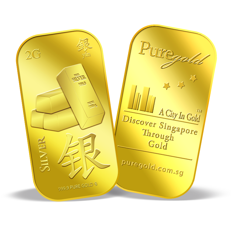 The image is embossed on a 2 grams 999.9 fine gold bar.