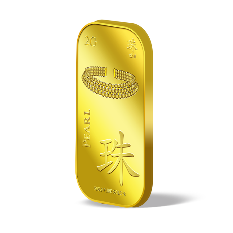 The image is embossed on a 2 grams 999.9 fine gold bar.