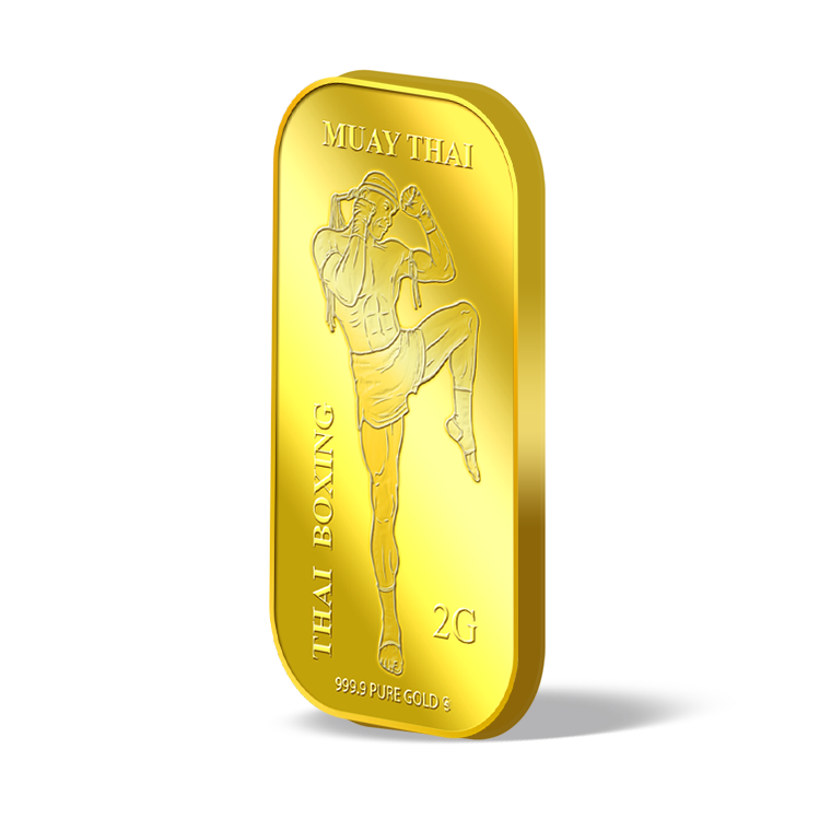 The image is embossed on a 2 grams 999.9 fine gold bar.
