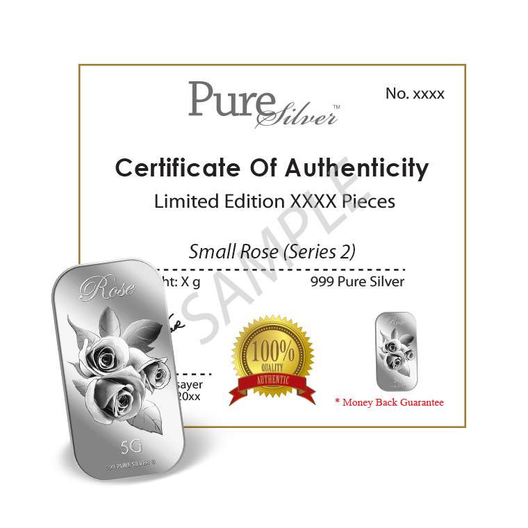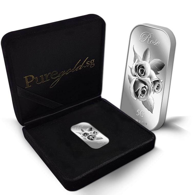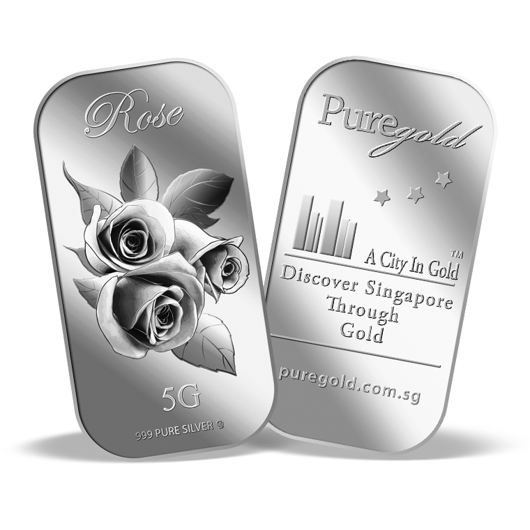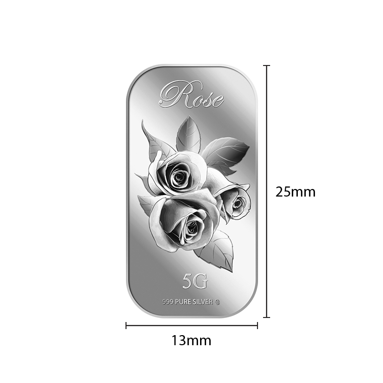 In this uniquely designed gold bar, the big single gold rose with leaves represents joy, gladness, friendship and hope, making this gold bar a perfect gift for loved ones or close friends to show them that we rejoice in their happiness.