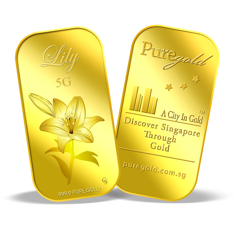 The image is embossed on a 5 grams 999.9 fine gold bar.