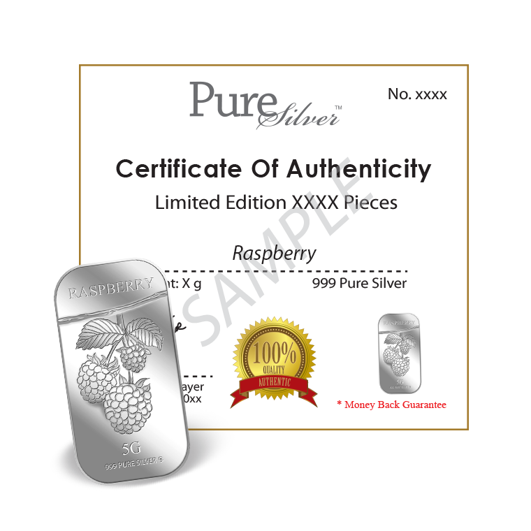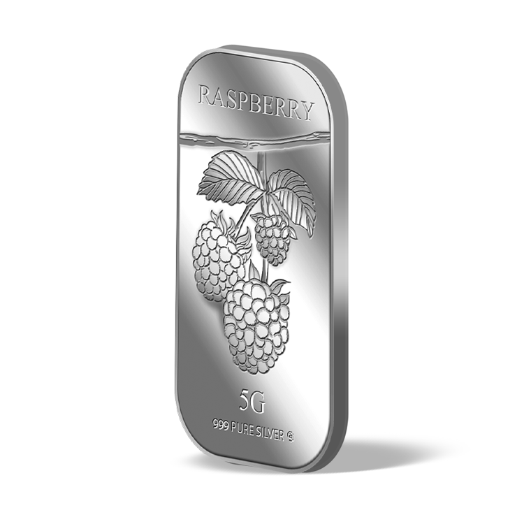 The image is embossed on a 5 grams 999 fine silver bar.