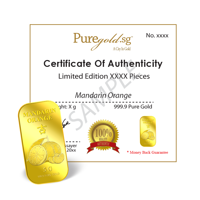 The image is embossed on a 5 grams 999.9 fine gold bar.
