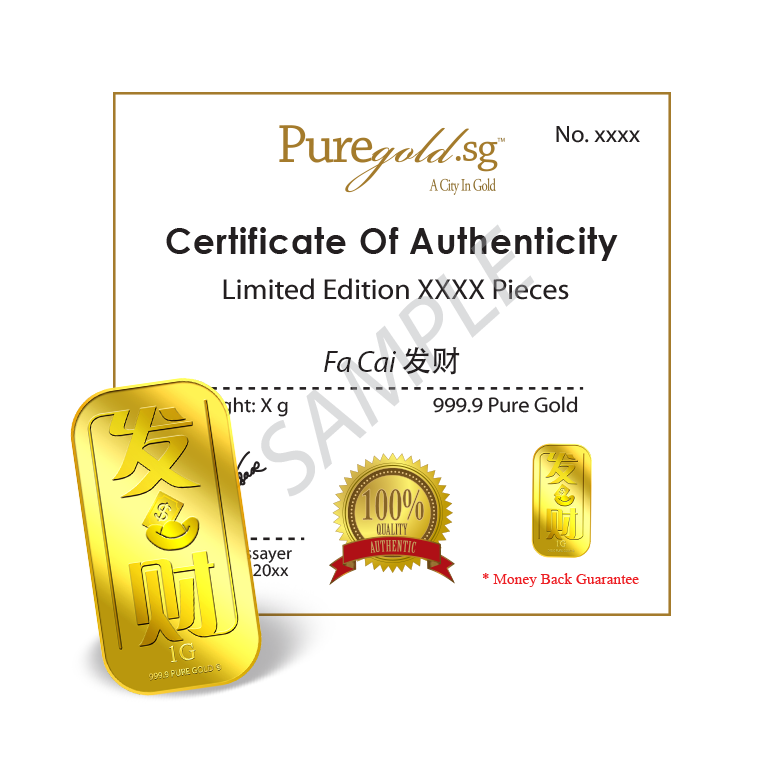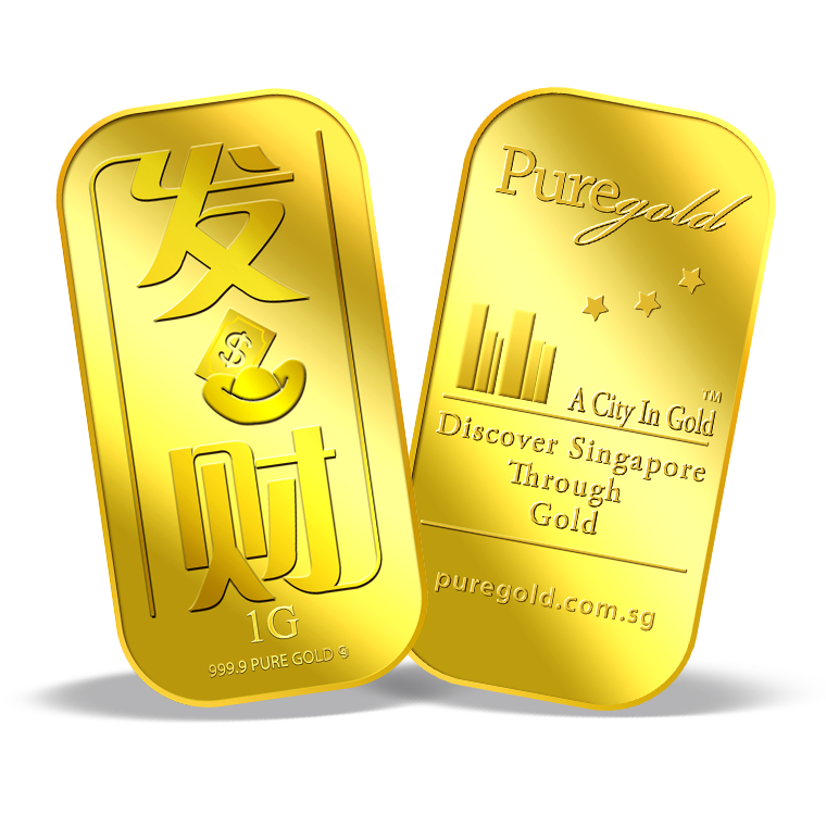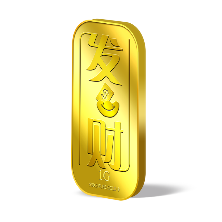 The image is embossed on a 1 gram 999.9 fine gold bar.