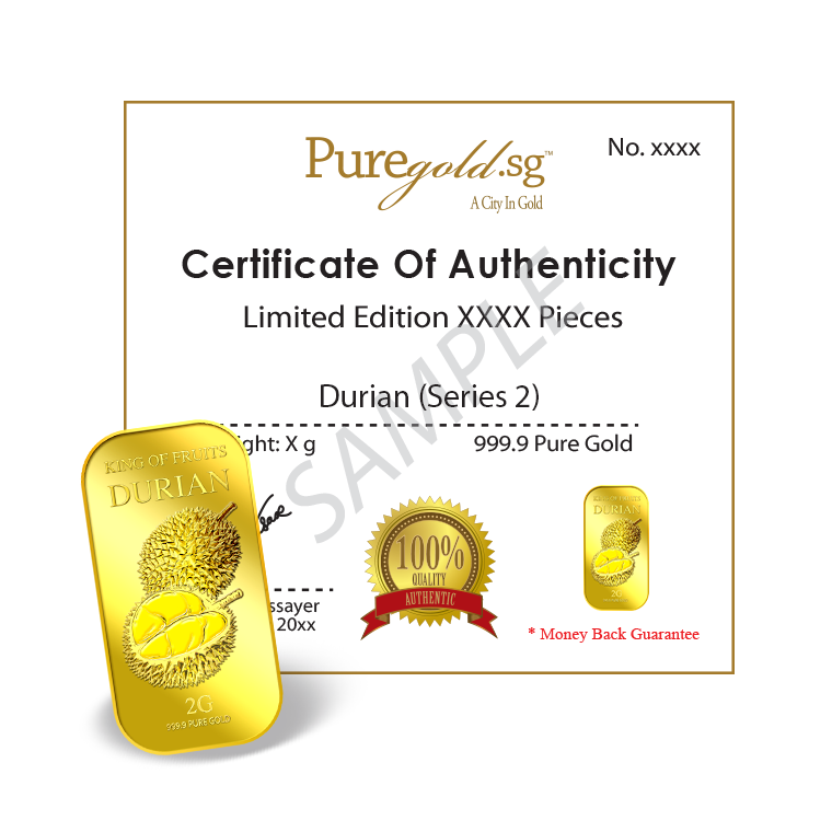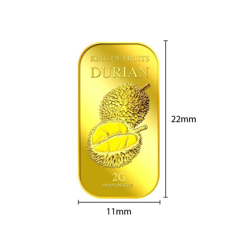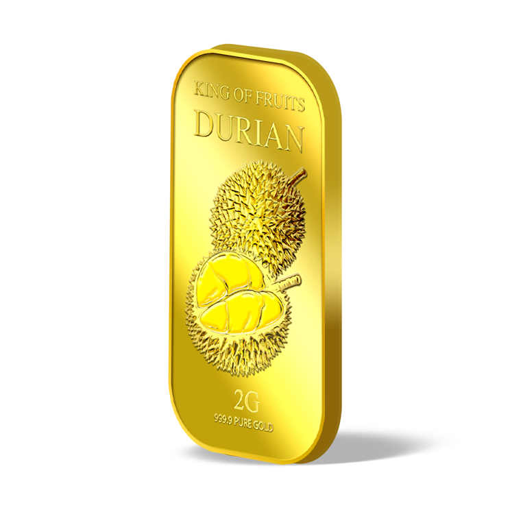 The image is embossed on a 2 grams 999.9 fine gold bar.