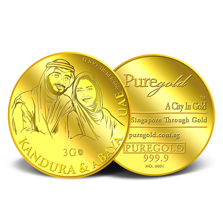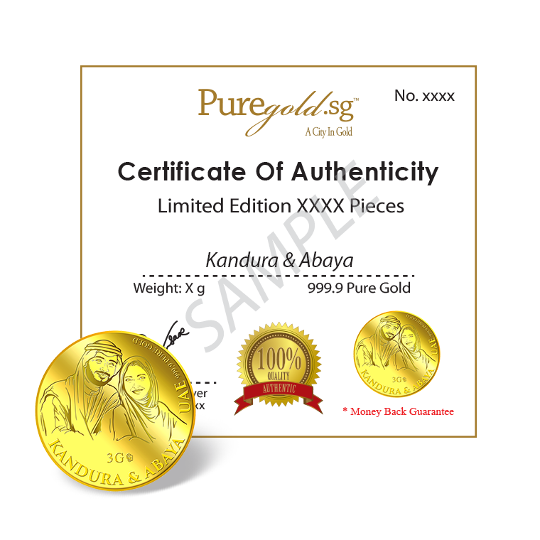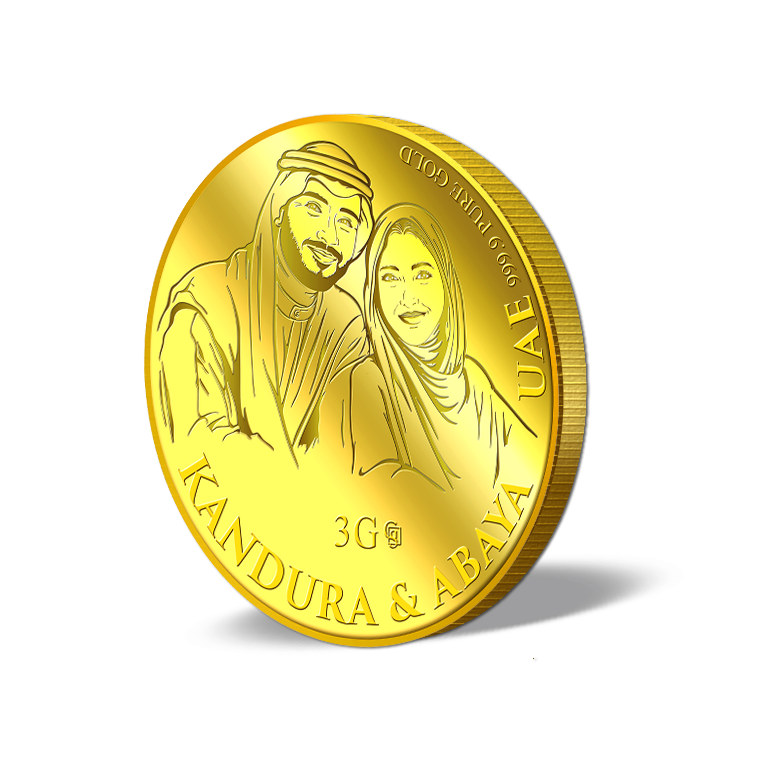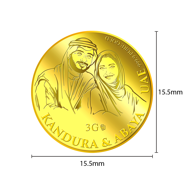 The image is embossed on a 3 grams 999.9 fine gold medallion.