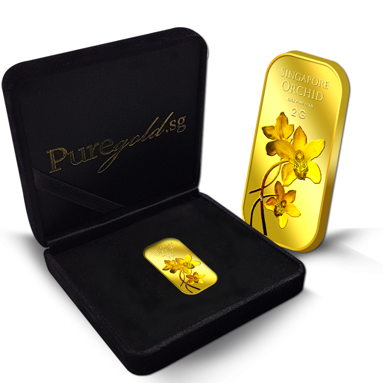 The image is embossed on a 2 grams 999.9 fine gold bar.
