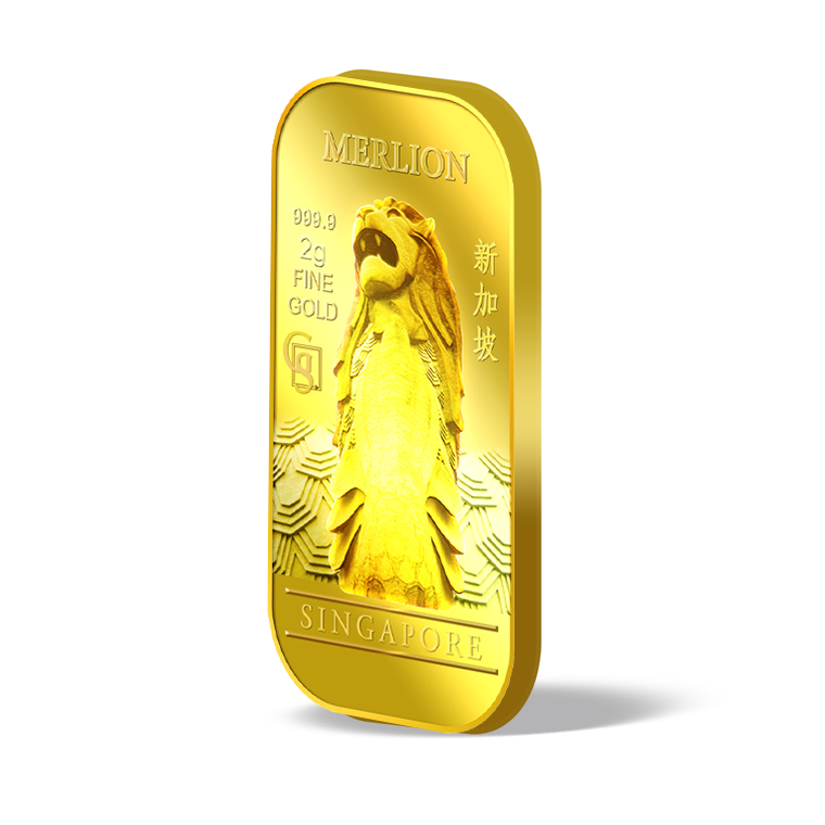 The image is embossed on a 2 grams 999.9 fine gold bar.