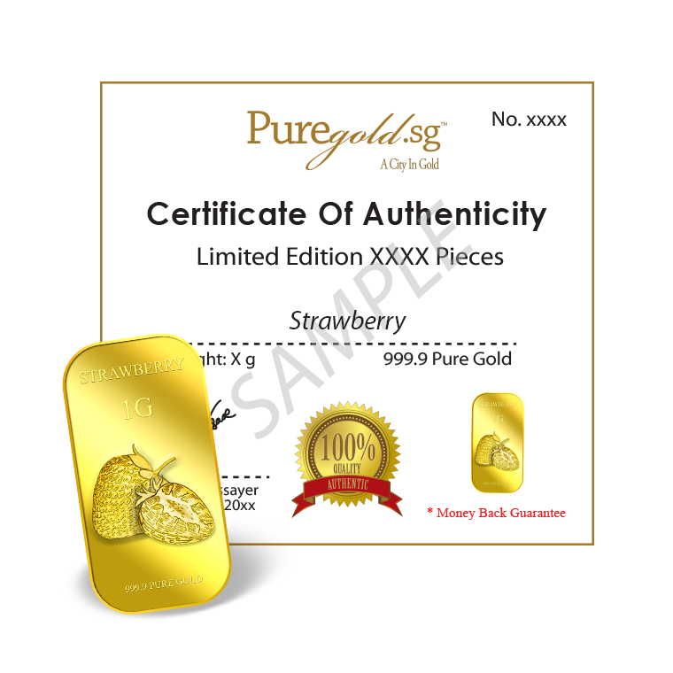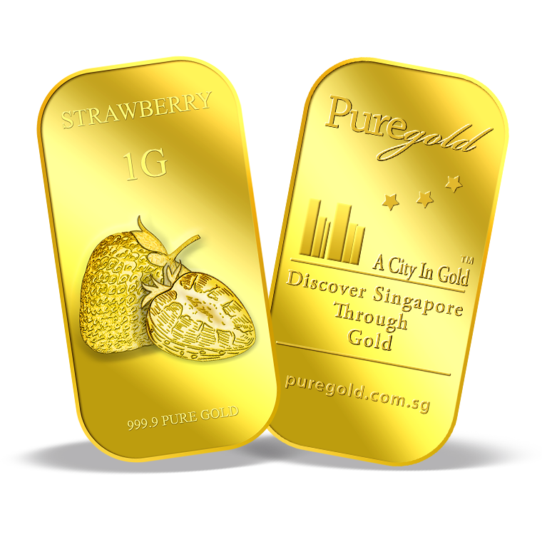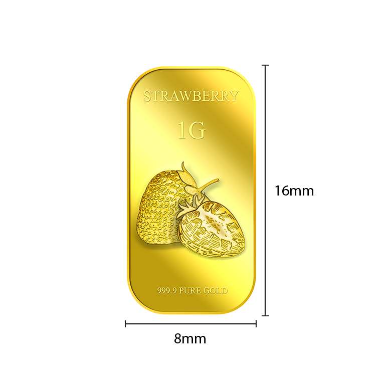 The image is embossed on a 1 gram 999.9 fine gold bar.