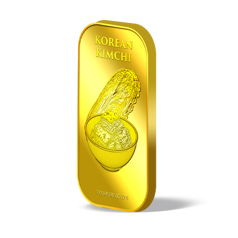 The image is embossed on a 2 grams 999.9 fine gold bar.