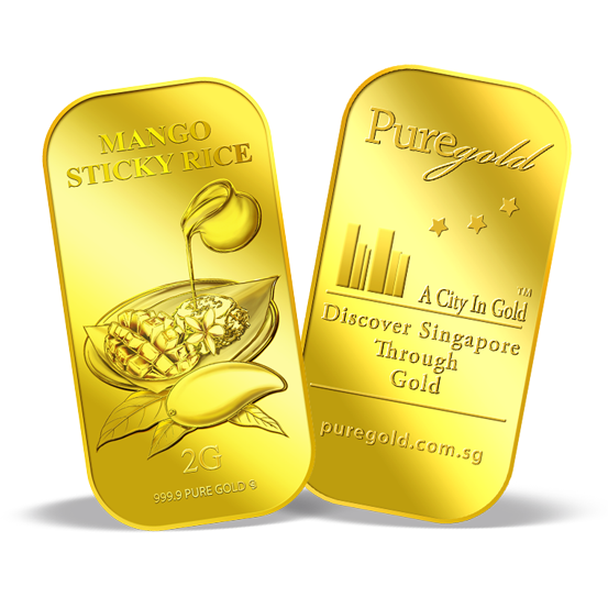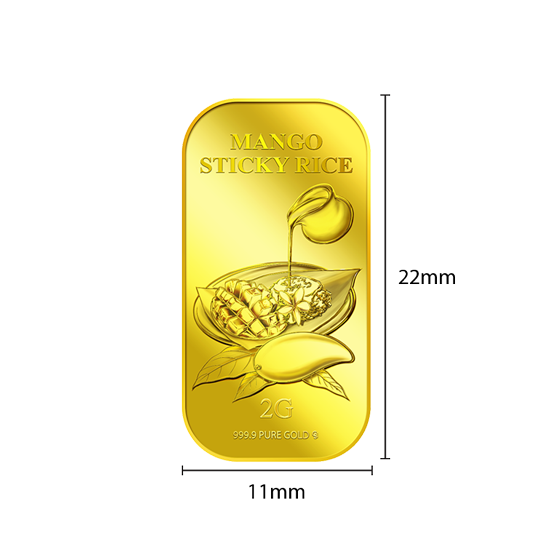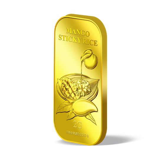 The image is embossed on a 2 grams 999.9 fine gold bar.