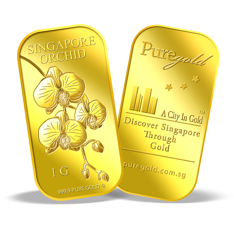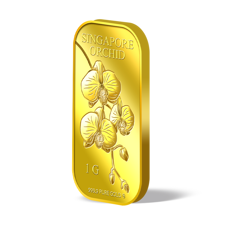 The image is embossed on a 1 gram 999.9 fine gold bar.